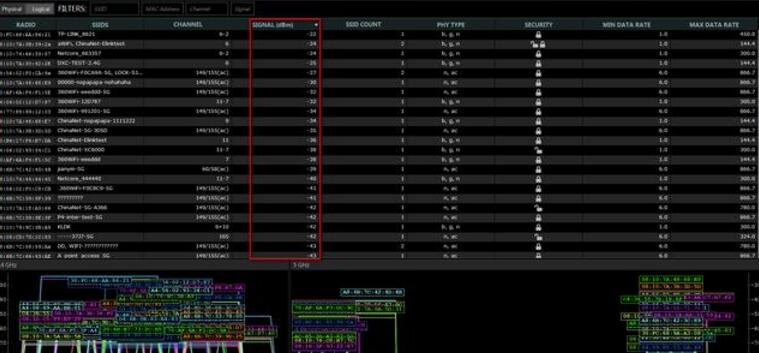 这个负数值代表了什么呢?在专业术语中,db、dbm经常用来表达WiFi信号强度,而这个负数就是WiFi信号强度的衡量值。-70dbm以上为理想的信号强度,-70 dbm~-80 dbm为中等信号强度,小于-80dbm为弱信号,多数企业级AP可以接收到-95dbm左右的信号。