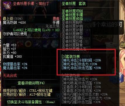所以需要来做一下这个技能的伤害以及CD,这样才能支持过图空格伤害高,而且冷却快!那么这里首饰套就需要选择圣者祈愿!三件套!减CD,加攻击,加范围!