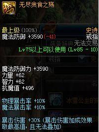 次之做无尽贪食之殇,30%的爆伤,需要暴击才能发挥其效果,所以要尽力堆满暴击!
