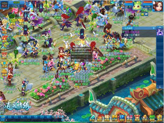 如果你是第一次接触《逍遥情缘》的玩家,看到这种场面也不用太过担心,眼前的一切虽然纷繁复杂,但只要跟随任务指引向前走,游戏的全貌就会逐一向你展现。在这一过程中,你会领到你的第一只宠物草团种子,你会获得一身保护自己的基础装备,你会遭遇你的首次战斗,你会加入帮派、建立家园、学习新技能...在经历了这一切之后,相信你对这个世界也就有了基本的了解啦~