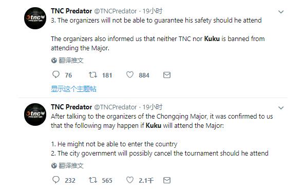 主办方也再次通知我们无论是TNC还是Kuku都没有被禁止参加此次Major。”