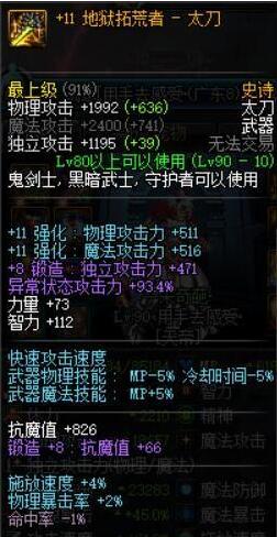 太刀不仅有智力加成,而且攻速释放速度快,是除光剑外最快的武器,手感棒伤害也不俗,而巨剑不仅速度慢,还不加成智力,你说一个红眼带巨剑钝器追求极限伤害还说的过去,一个天帝也带钝器巨剑的话,那真的是真“天帝”玩家了。