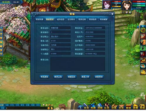 帮派威望达到中立以后,玩家通过参加活动、上缴物品、使用道具都可增加个人威望、帮派威望;个人威望达到一定数值即可达到对应的官职。个人威望上限受帮派威望等级影响;帮派威望达到一定数值,自动提升帮派威望等级。看来,想要建立一个德高望重的大帮还是非常不容易的,不过我相信,只要通过全帮成员的努力,这一天终究会到来的!