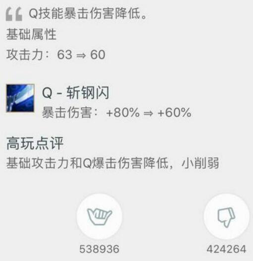 有多少人喜爱一个东西,就有多少人讨厌这个东西,不过亚索是1:9,一个人喜爱,九个人讨厌。从图片中我们也可以看到亚索被削弱后获得了百万的赞,可见大家都盼着亚索被削弱呢,不过小编看来这个削弱并不会对亚索造成什么太大的影响,毕竟装备的回归对其加持度很高,这样的改动最多算是平衡。